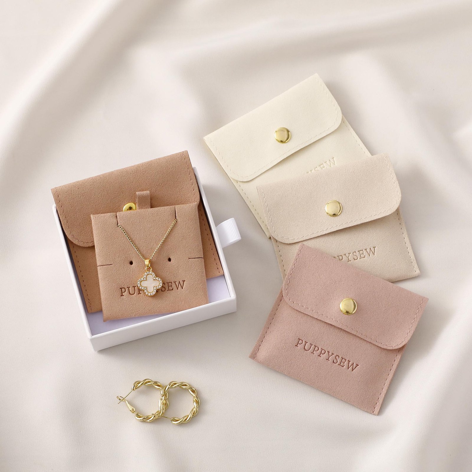 MOQ 50Pcs Custom Logo 8×8cm Microfiber Necklace Button Pouch