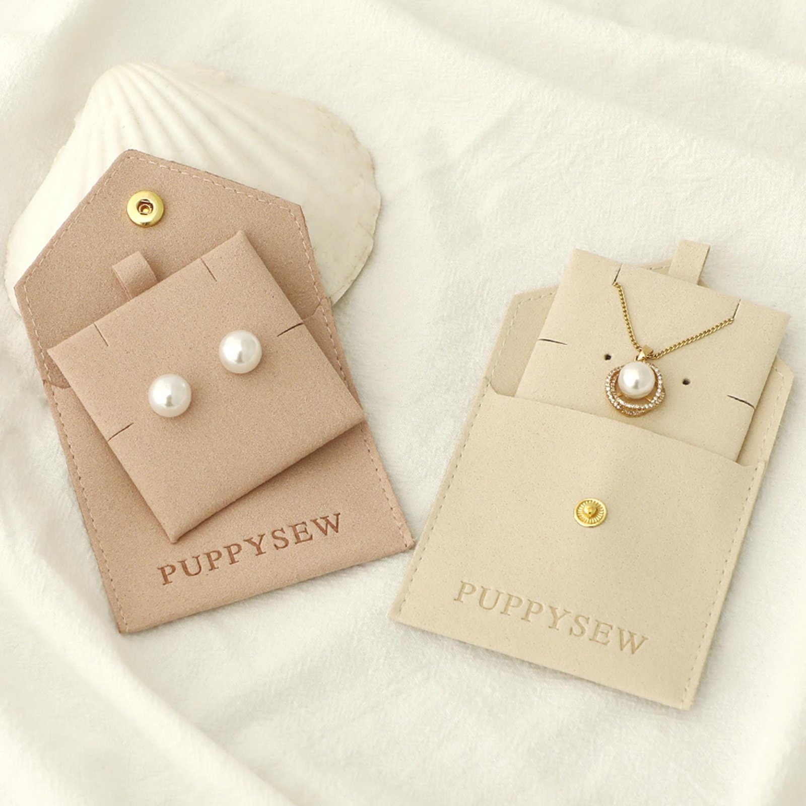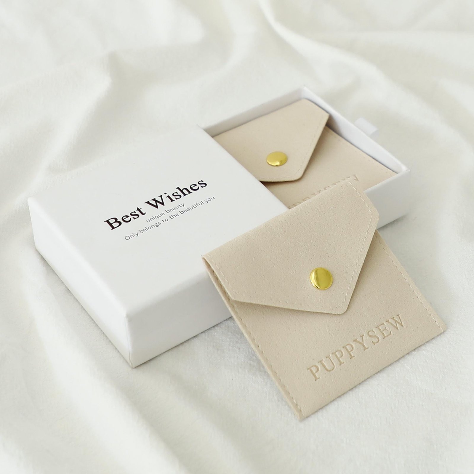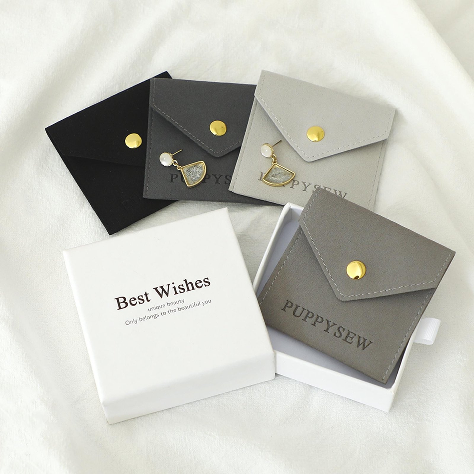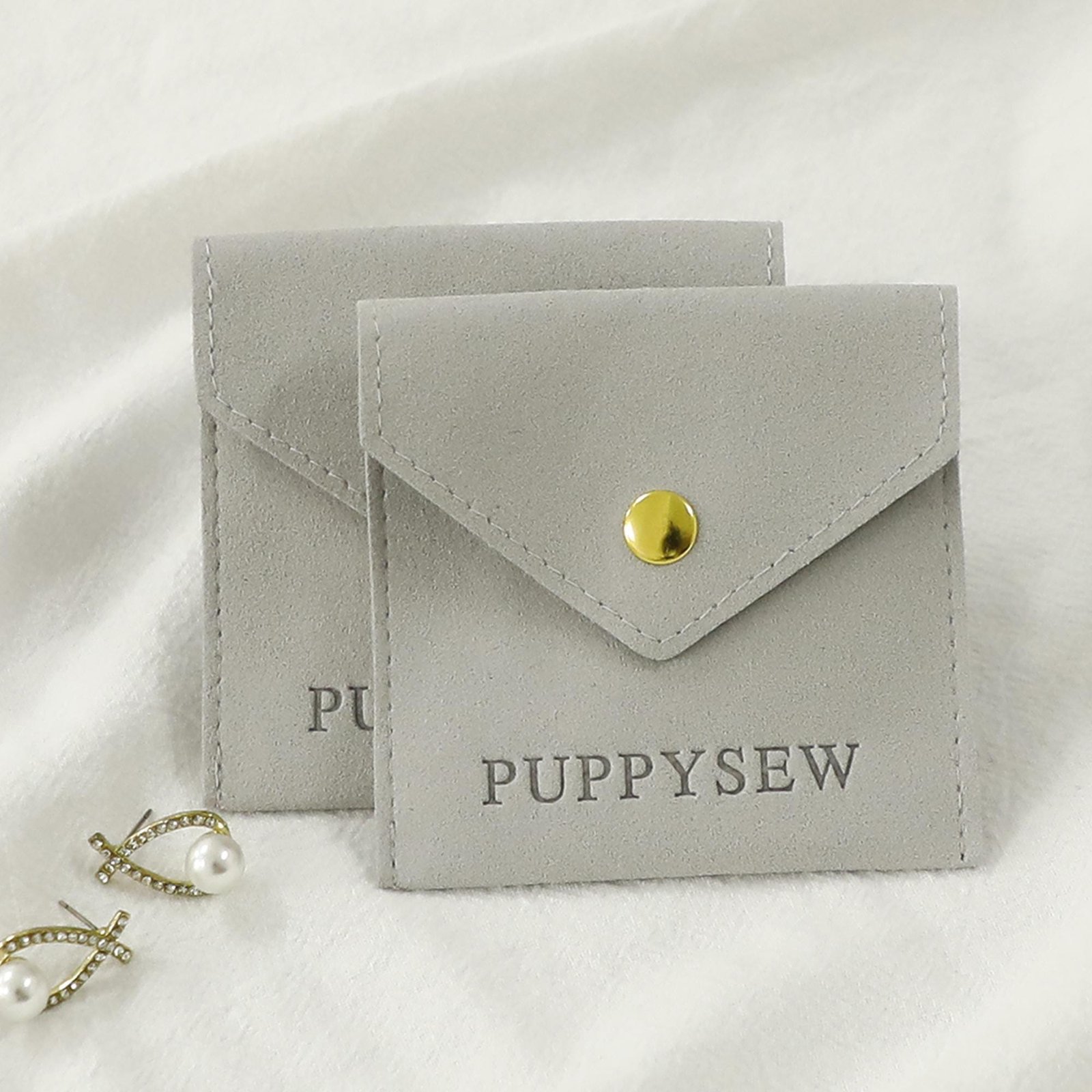 Low MOQ 50Pcs Custom Logo 8×8cm Microfiber Pouch Bag with Button Necklace Bags