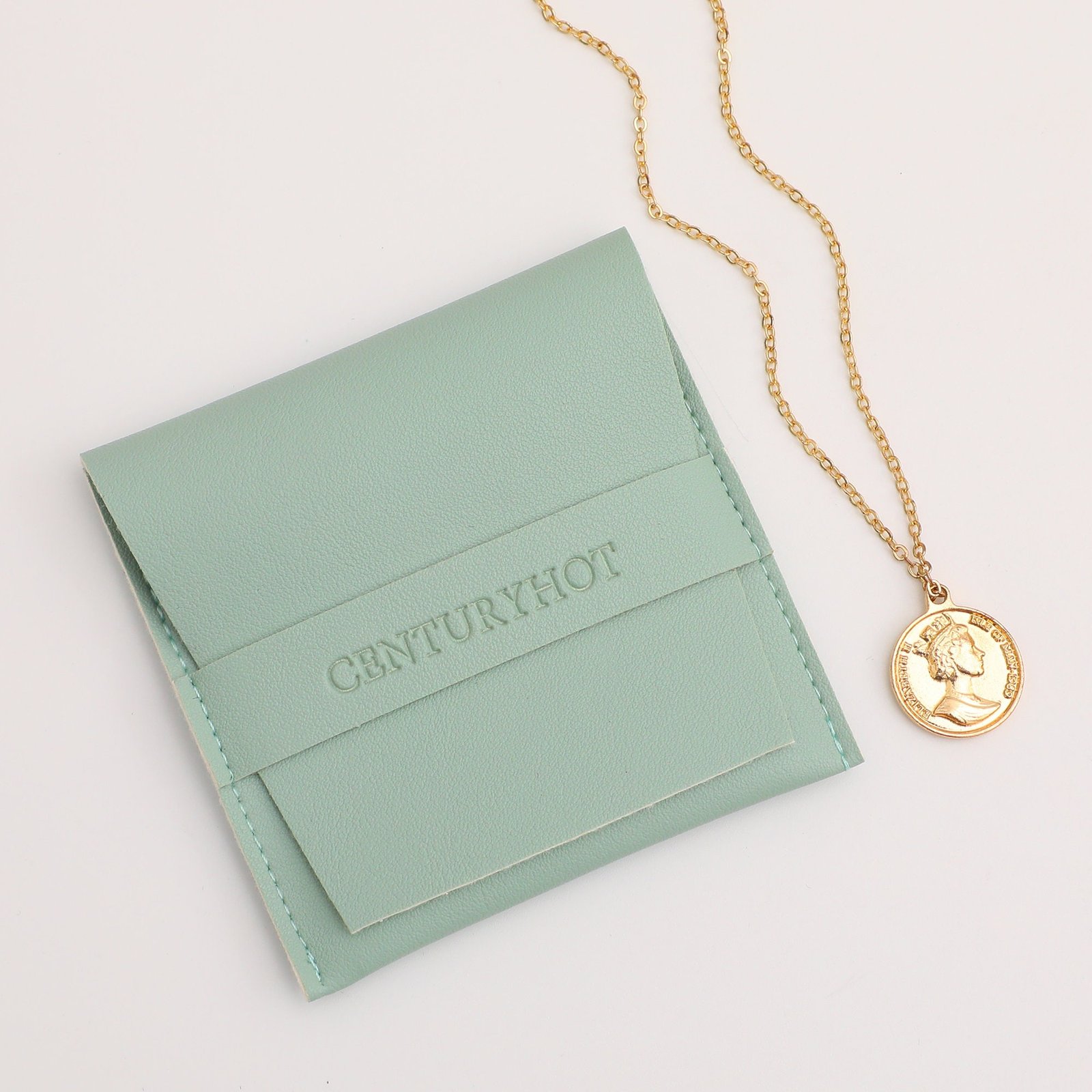 MOQ 50Pcs-Custom Logo-Green PU Leather-Mini Jewelry Pouch