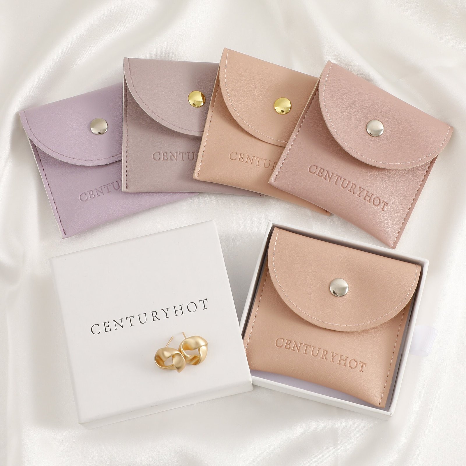 Low MOQ 50Pcs, Custom Logo Faux Leather Button Jewelry Bag