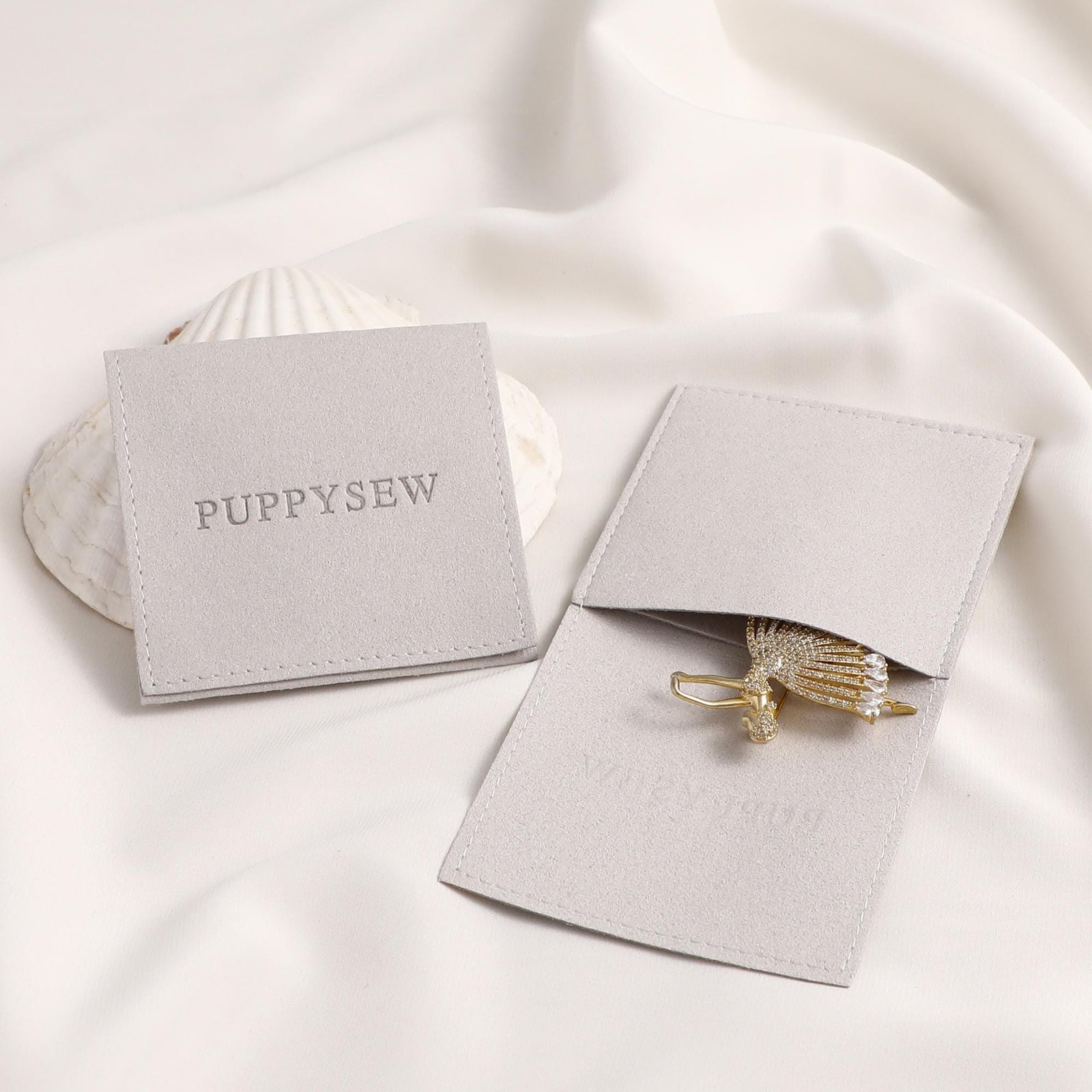 Low MOQ 50Pcs, Custom Logo Microfiber Envelope Style Ring/Necklace Bags